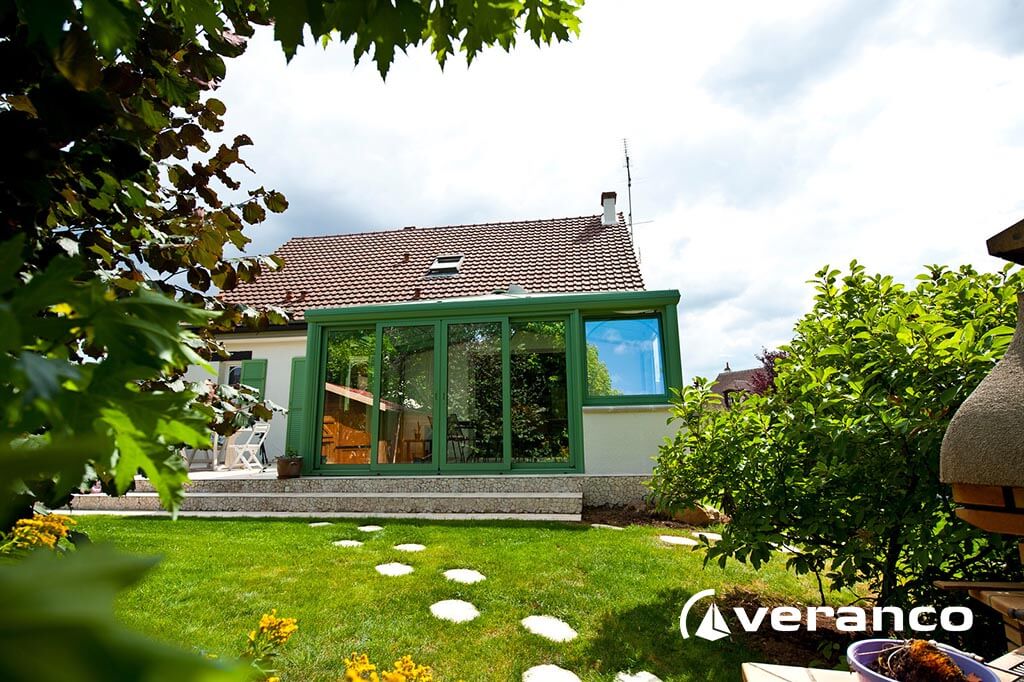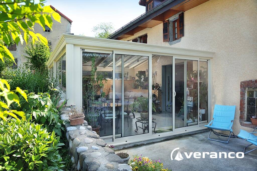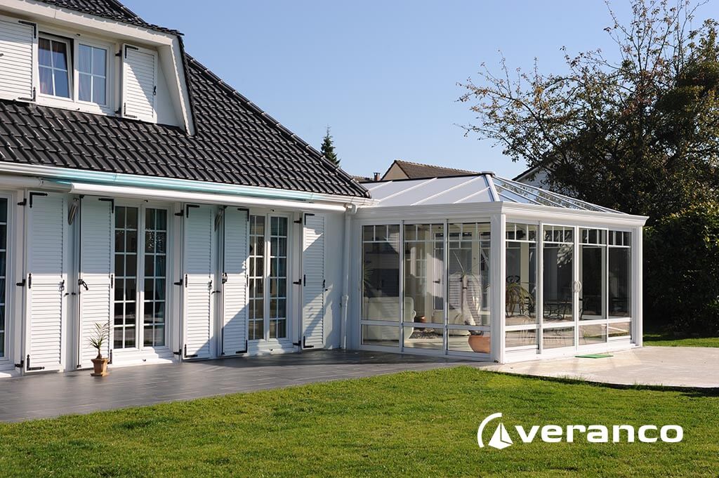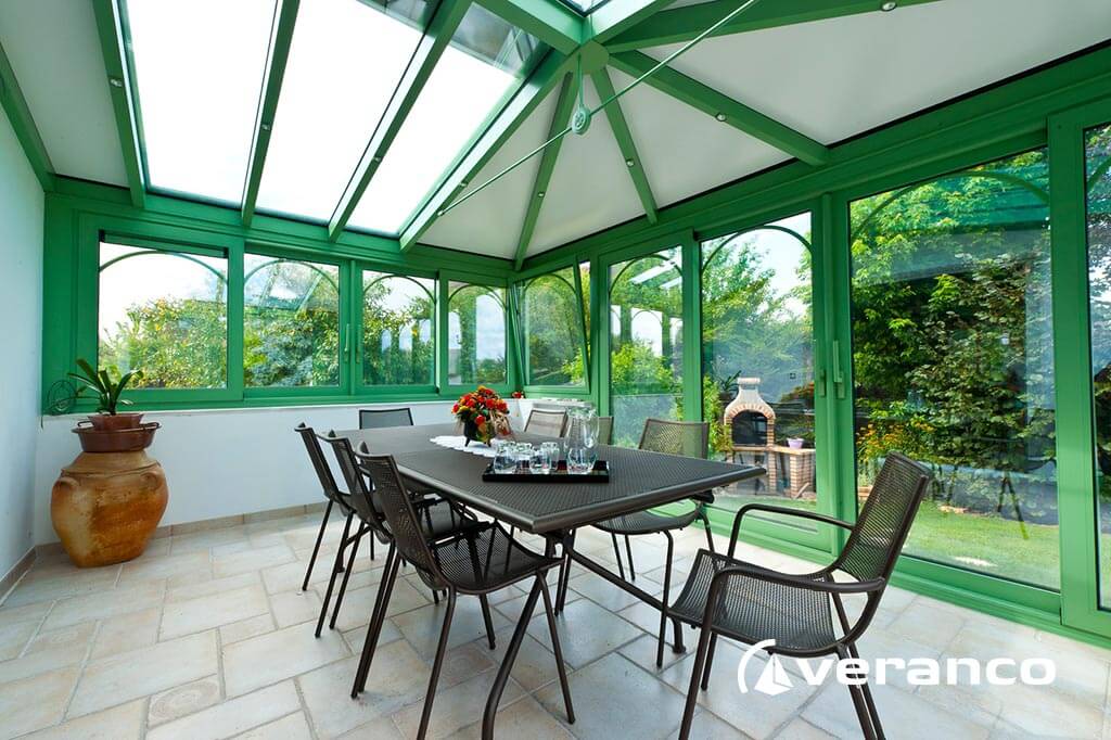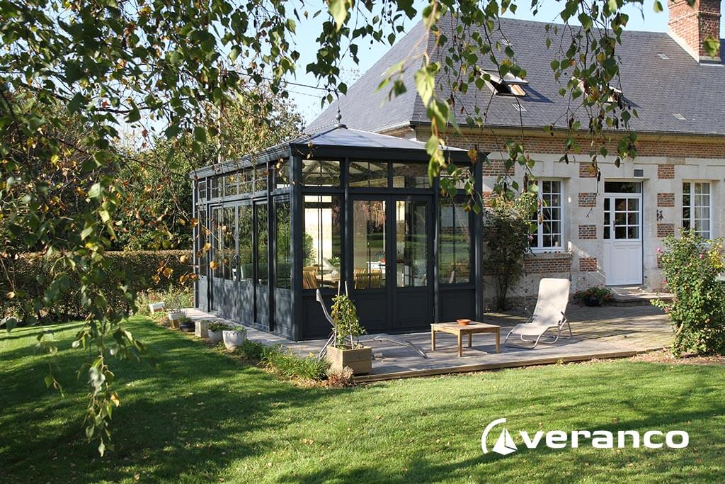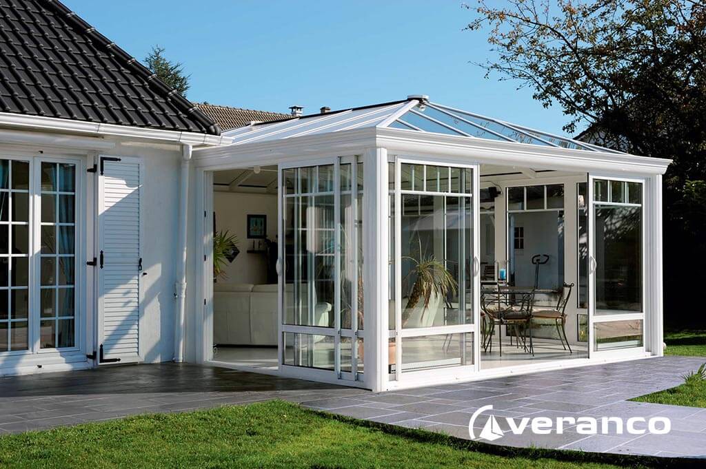 La Véranda Grenat est composée d'une toiture rectangulaire à facettes rayonnantes avec une double pente. Sa toiture offre une grande hauteur sous plafond pour une réelle impression de volume et d'espace. Cette conception permet de jouer astucieusement avec le verre et les panneaux isolant afin de gagner en originalité et en design. La hauteur de sa toiture favorise l’encadrement d’ouvertures hautes.